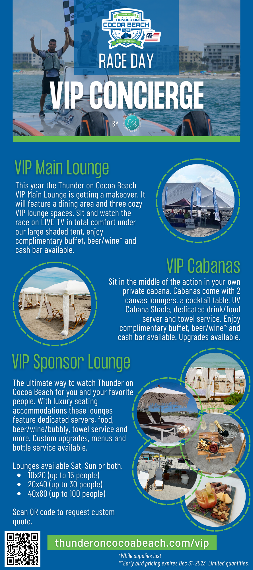 Interested in booking a VIP Sponsor lounge for Thunder on cocoa beach? Lounge prices are customized to fit your needs.